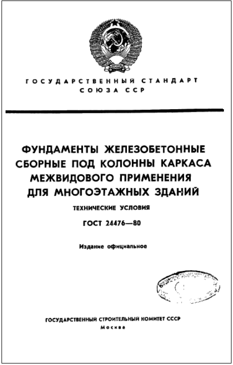 ГОСТ 24476-80 Фундаменты железобетонные сборные под колонны каркаса межвидового применения для многоэтажных зданий
