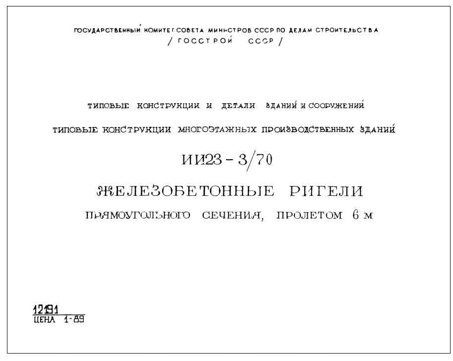 Серия ИИ 23-3/70. Железобетонные ригели прямоугольного сечения пролетом 6м