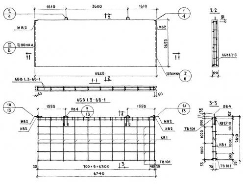 В1.3-68.27.12-1    Внутренние стеновые панели   (Серия 1.131-1).